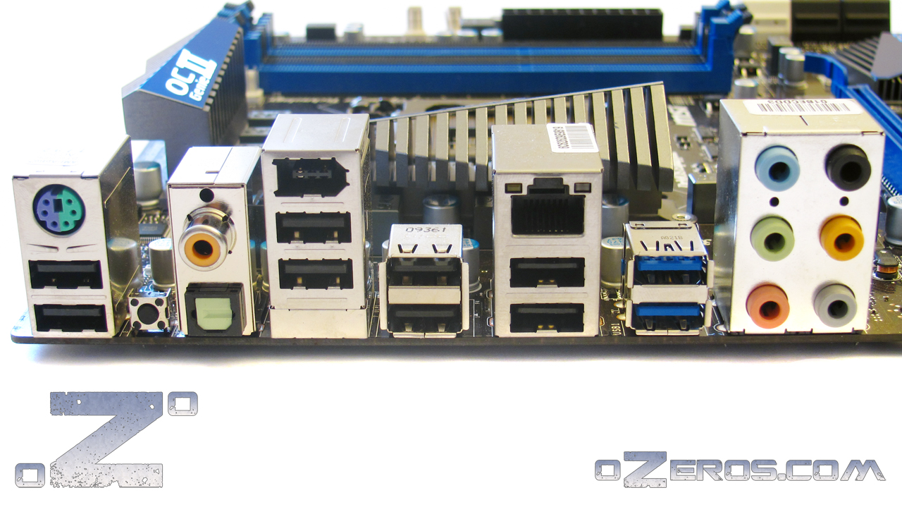 El panel I/O es bastante variado, y podemos encontrar 6 puertos USB 2.0 y 2 USB 3.0, 1 puerto PS/2, boton para clear CMOS, salida optica y coaxial, 1 puerto IEEE 1394, una salida Lan RJ45 y los 6 jack de audio comúnmente usados.