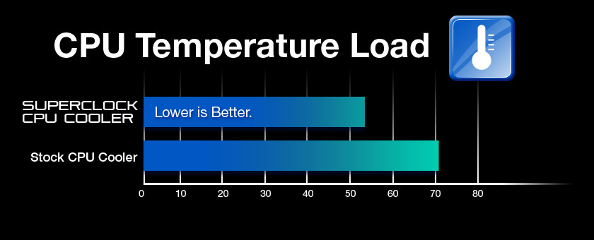 El EVGA Superclock incorpora un diseño de aletas de aluminio color negro junto a un cooler de 120mm LED rojo, el que puede proveer de 750-2500 RPM y 26-84 CFM. Una parte esencial es la cantidad y diámetro de los Heatpipe que entran en contacto con la CPU, estos son 5 de 8mm niquelados en color negro.