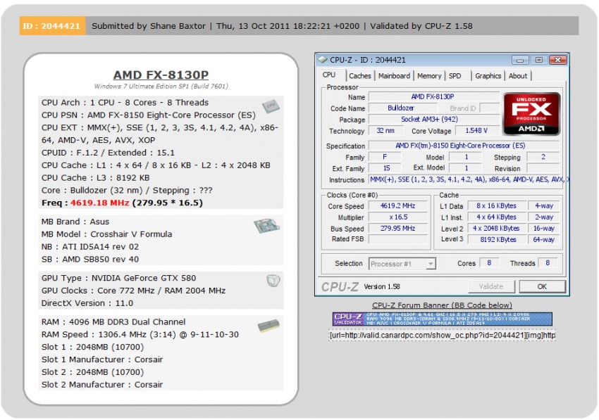 Desde TweakTown nos llegan las pruebas de overclock de un par de Corsair Dominator GT de 2×2 GB que llegó a la impresionante cifra de 2613 MHz y latencias 9-11-10. Para llegar a esta cifra no solo se necesitan de un excelente kit de memorias capaces de trabajar a altas frecuencias, si no que además de un CPU FX-8150 de AMD. La nueva arquitectura Bulldozer demuestra que su controlador de memoria esta completamente preparado para lograr cosas interesantes y sobrepasar con creces los limites de su anterior arquitectura.