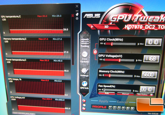 Hace poco Asus nos mostraba su nueva Direct CU II HD 7970, una tarjeta que trabaja a 1010 MHz en el núcleo y 5600 MHz para las memorias (v/s 925 MHz y 5,5 GHz respectivamente). De acuerdo a la información rescatada en la fuente, el modelo llega de forma normal a 1220 MHz en el núcleo y su sistema de refrigeración mantiene la temperatura del GPU entre 29-30 grados en IDLE (velocidad del ventilador del 10%), y la temperatura máxima obtenida durante la ejecución del programa Furmark fue de 66 grados (los fans se establece en 30% o 1.600 RPM). Sin duda resultados muy prometedores de la que parece ser hasta la fecha la mejor HD 7970 no referencial o una de las mejores tarjetas para el overclock.
