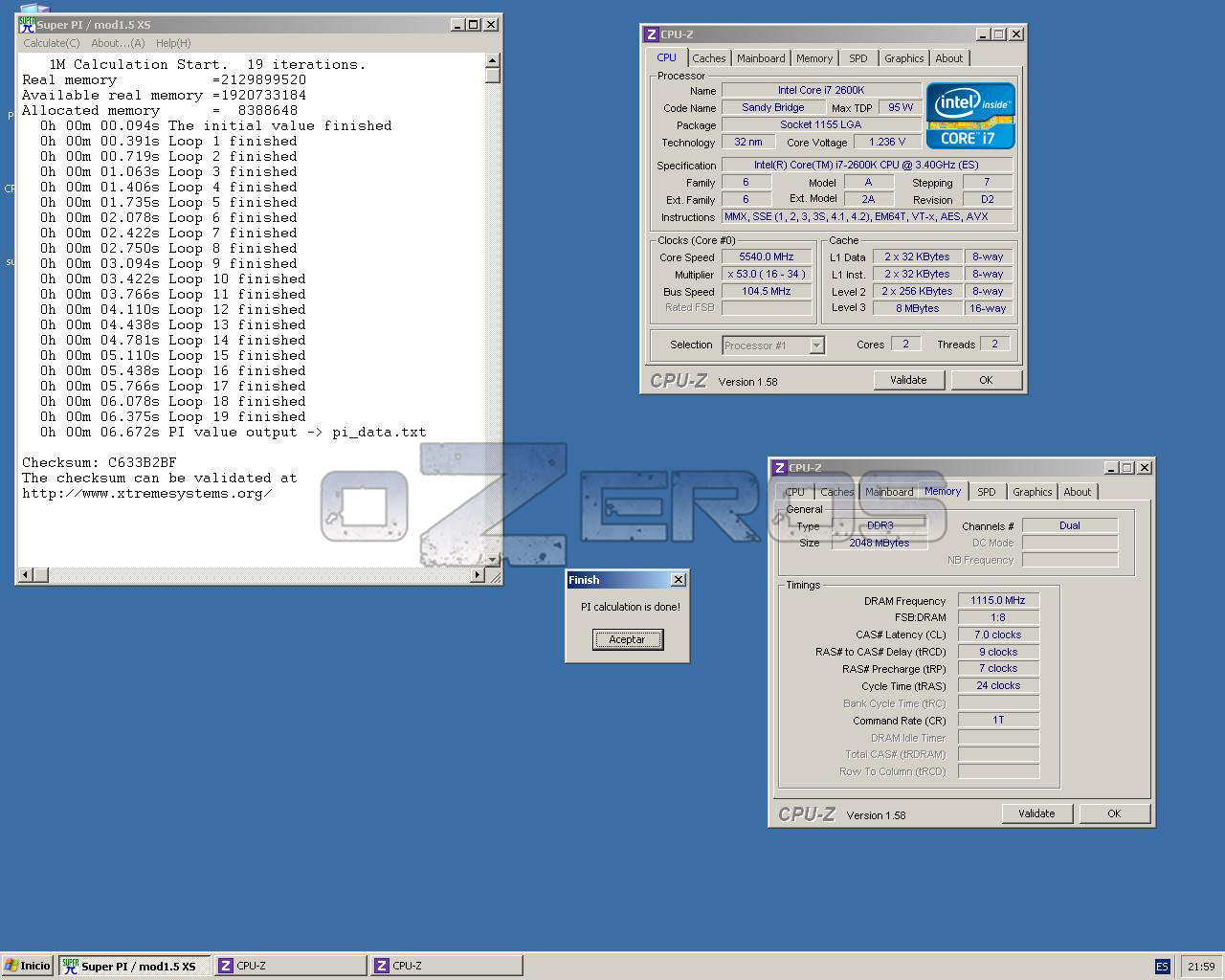 Para este caso conseguimos un total de 59,7 puntos en HWBot y un nuevo record nacional para Super Pi 1M.