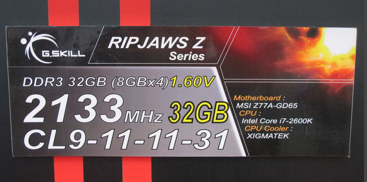 G-skill, marca que hace poco registró la máxima frecuencia de memorias, nos presenta unos nuevos módulos Ripjaws Z de 32 GB (4 x 8 GB) y 1,6v, los que corren a 2133 MHz de frecuencia. Los kits de memoria están preparados para ser soportados en placas madres Z77 (De hecho fueron exhibidos en una placa MSI Z77A-GD65 y una ASRock Z77 Extreme6).
