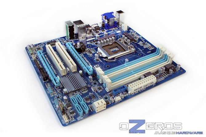El clásico tono celeste insigne de la marca en toda la humanidad de la B75M-D3H. Todo lo necesario para formar un computador potente en un reducido tamaño de 24,4 x 22 centímetros, algo aún más pequeño que el formato mATX estándar de 24,4 x 24,4 centímetros.