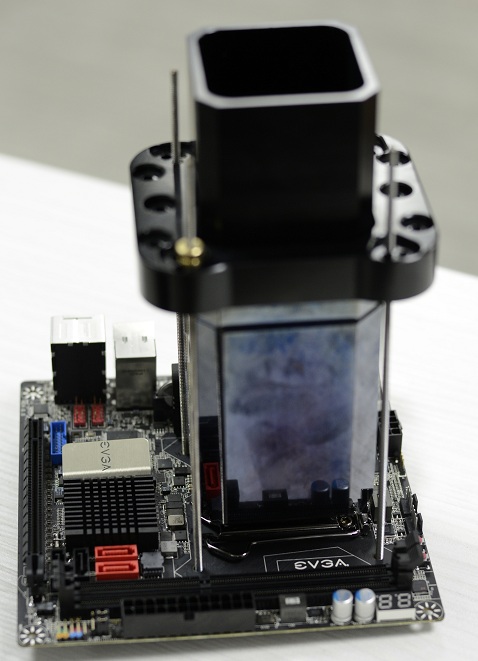 Si piensas que ahorrar espacio y sacarle el máximo provecho es la “cumbia”, pues quedarás fascinado con lo que prepara EVGA. Los mini PC están de moda, con eso de la miniaturización, integración y esas hierbas que nos hacen olvidarnos de ese querido monstruoso tarro lleno de luces. Pero que más da, si sólo se pudiera obtener el máximo rendimiento y por que no un poco de overclok extremo. Si, de ese en el que colocamos un POT y derramamos LN2. Pues si se trata de EVGA, es posible.