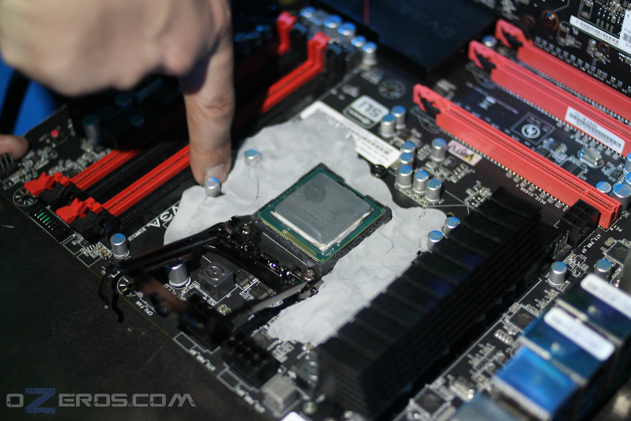No podían faltar las increíbles Booth Babes que a todos nos gustan, en especial a un par de “jotes” en oZeros y que no dudaron en conocer el frió y desconocido líquido que usamos para overclockear el PC.