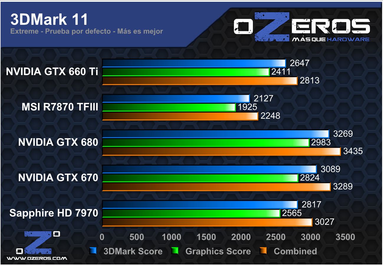 Es claro que la nueva tarjeta de NVIDIA no tiene mucho que envidiarle a las mayores en rango, demostrando ser una apta para alcanzar algunos récords en esta prueba. De hecho es tan estrecho el marcador que supera, por un margen de error, a la GTX 670.