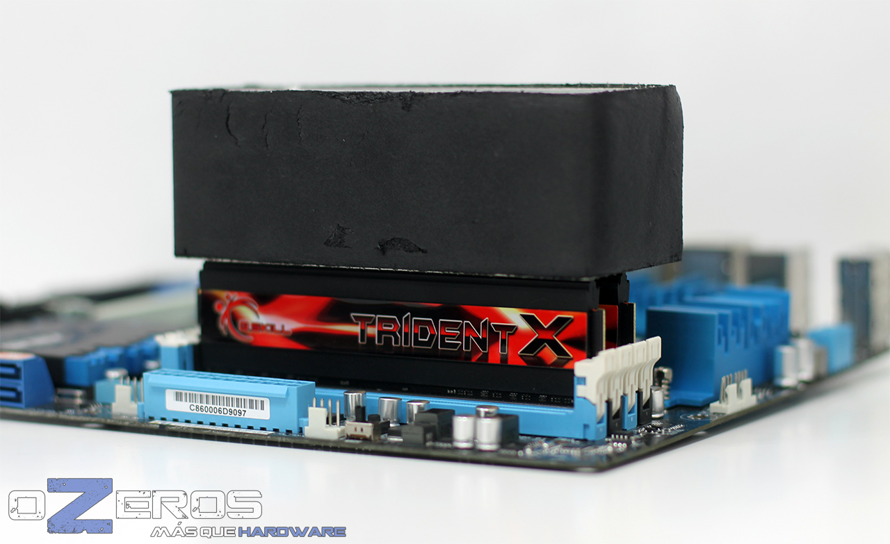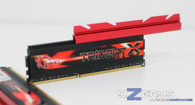 G.Skill pensó en todos los posibles casos para el uso de estas memorias, desde el simple hecho de exhibirlas en tu precioso gabinete, o bench table, hasta usarlas derechamente en una sesión de overclock extremo. Para este último caso, G.Skill reutilizó el genial sistema que implementa desde hace tiempo por Corsair en sus modelos Dominator, donde la cualidad principal es que podemos desmontar la parte superior (e irregular) del disipador, para dar un área de contacto más amplio con pots de refrigeración extrema.