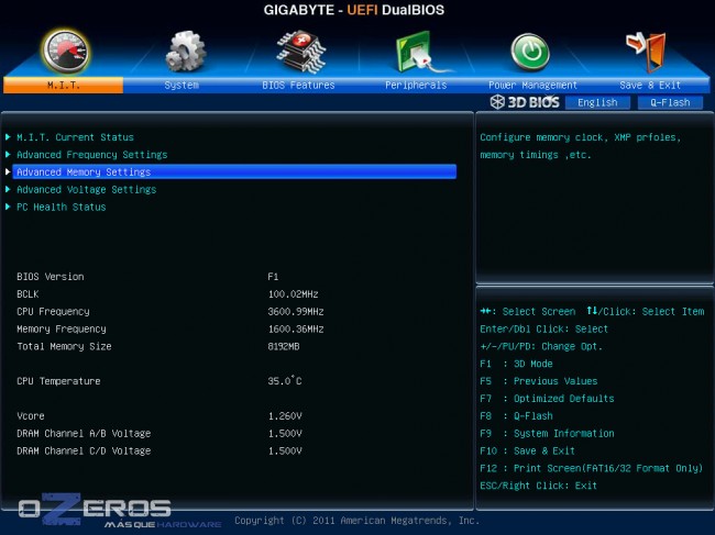 Si pudieron leer el review de la X79-UD5 (y si no denle una rápida mirada al apartado de BIOS), verán que tenemos las mismas opciones en todo, incluso en overclock. Aquí seremos un poco críticos al ver poca innovación en un apartado esencial en placas de alto rendimiento. Uno que otro retoque hubieran hecho la diferencia, además de implementar mejoras en las opciones de overclock.