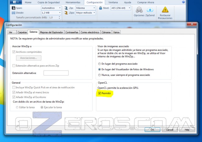 El fin máximo de AMD es unificar el procesamiento entre las dos unidades centrales (CPU y GPU), por ello la importancia de OpenCL. El software ahora es el principal responsable de que el GPU de los APU de AMD se mantengan en el tiempo. Y al parecer esto va bien encaminado, ya que cada año se logran introducir más aplicaciones que hacen uso del GPU, en conjunto con el CPU. Una de esas aplicaciones es WinZip la que en su versión 16.5 es capaz de usar la aceleración del GPU en la compresión y descompresión de datos. Para saber como funciona esto debemos tener un GPU AMD e ir a las opciones del sistema del programa donde podremos habilitar el uso de OpenCL.