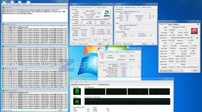 El overclock en ambos APU Trinity fue algo fácil, gracias a que tenemos versiones con el multiplicador desbloqueado. Un plus que no todos los CPUs Intel pueden ofrecer. Con ello nos dispusimos a encontrar el máximo nivel de overclock estable para uso diario. Para el CPU logramos un poco más de 4,4 GHz (600 MHz extras) y para el GPU 1,1 GHz (300 MHz más). Nada de mal si pensamos en lo barato de la plataforma, en el potente nivel ya mostrado y el poco tiempo que se necesitó para lograrlo.