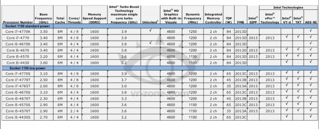 La primera ola de procesadores estará compuesta por los CPU Core i7-4770K, i7-4770, Core i5-4670K, Core i5-4670 y Core i5-4570 . Hablando de las versiones de bajo voltaje , tenemos a los Core i7-4765T, Core i5-4570T, 45W Core i7-4770T, Core i5-4670T, 65W Core i7-4770S, Core i5-4670S, Core i5-4570S, Core i5-4430S.