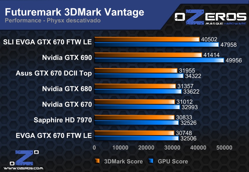 | Juego/Benchmark | EVGA GTX 670 FTW LE | SLI EVGA GTX 670 FTW LE | % de Eficiencia | % de Ganancia |