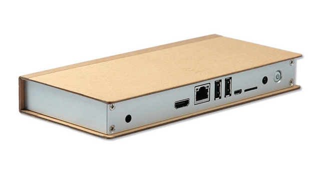 El primero es la APC Rock, una placa madre PC de 170 x 85 mm completamente rediseñada de la anterior APC 8750. Ahora esta incluye un procesador más potente basado en la arquitectura ARM Cortex-A9. Esto ya permite correr Andorid 4.0, a diferencia del anterior que sólo corría Android 2.3. El almacenamiento crece de 2 GB a 4 GB NAND Flash, mientras que la memoria RAM DDR3 de 512 MB se mantiene. Una de las importantes mejoras es la inclusión de reproducción Full HD, algo vital para quienes quieran tener su mini PC conectado a su LED Full HD. Otro par de detalles de la APC Rock es que incorpora un puerto Micro-USB y un adaptado 20-pin ARM-JTAG header. Este último generalmente se utiliza para poder programar chips y cosas por el estilo, así como también para tener acceso a bajo nivel del hardware. En este caso de ARM. Ah…y lo mas importante es que su precio es de $79 USD.