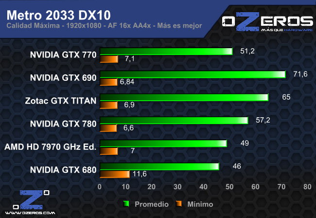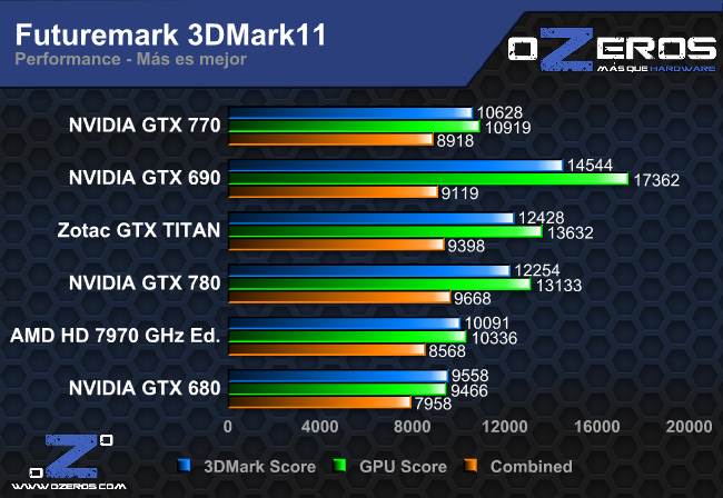 | Tarjeta gráfica | NVIDIA GTX 770 NVIDIA GTX 780 Zotac Geforce GTX TITAN NVIDIA GTX 690 NVIDIA GTX 680 AMD HD 7970 GHz Edition |
