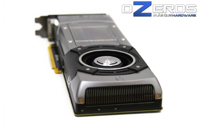 Una mirada por el costado a lo que nos enseña la GTX 770 sobre el sistema de refrigeración. Aquí vemos el enrejado por donde se disipa el calor que es arrastrados desde el interior de la tarjeta por el ventilados.