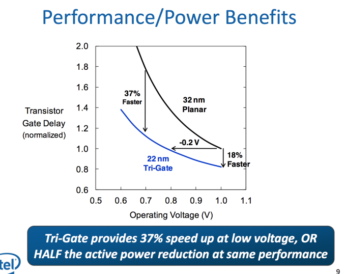 Esta nueva arquitectura se base en reducir el consumo y aumentar el rendimiento. Para lo primero tenemos la completa implementación de los 22nm vistos en los chips mayores como Ivy bridge y prontamente Haswell. Con ello también se implementan los transistores 3D y optimización del turbo boost, el que puede trabajar en diferentes estados y rangos de frecuencias. Con ello intel logra un “SoC” que puede alcanzar estados de ahorro de energía de la mitad (versus Saltwell) sin perder rendimiento.