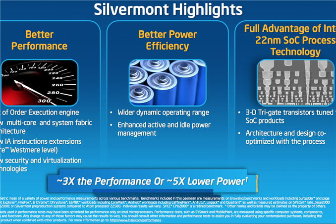 Silvermont inicia un cambio importante dentro de los planes de Intel, ya que esta arquitectura está fabricada específicamente para el mercado de chips de bajo consumo, el que componen smartphone y tablets. Esto lo permitirá la fabricación en 22nm, junto con la característica OoOe (Out-of-Order execution) ejecución “fuera de orden” en que trabajan estos chips.