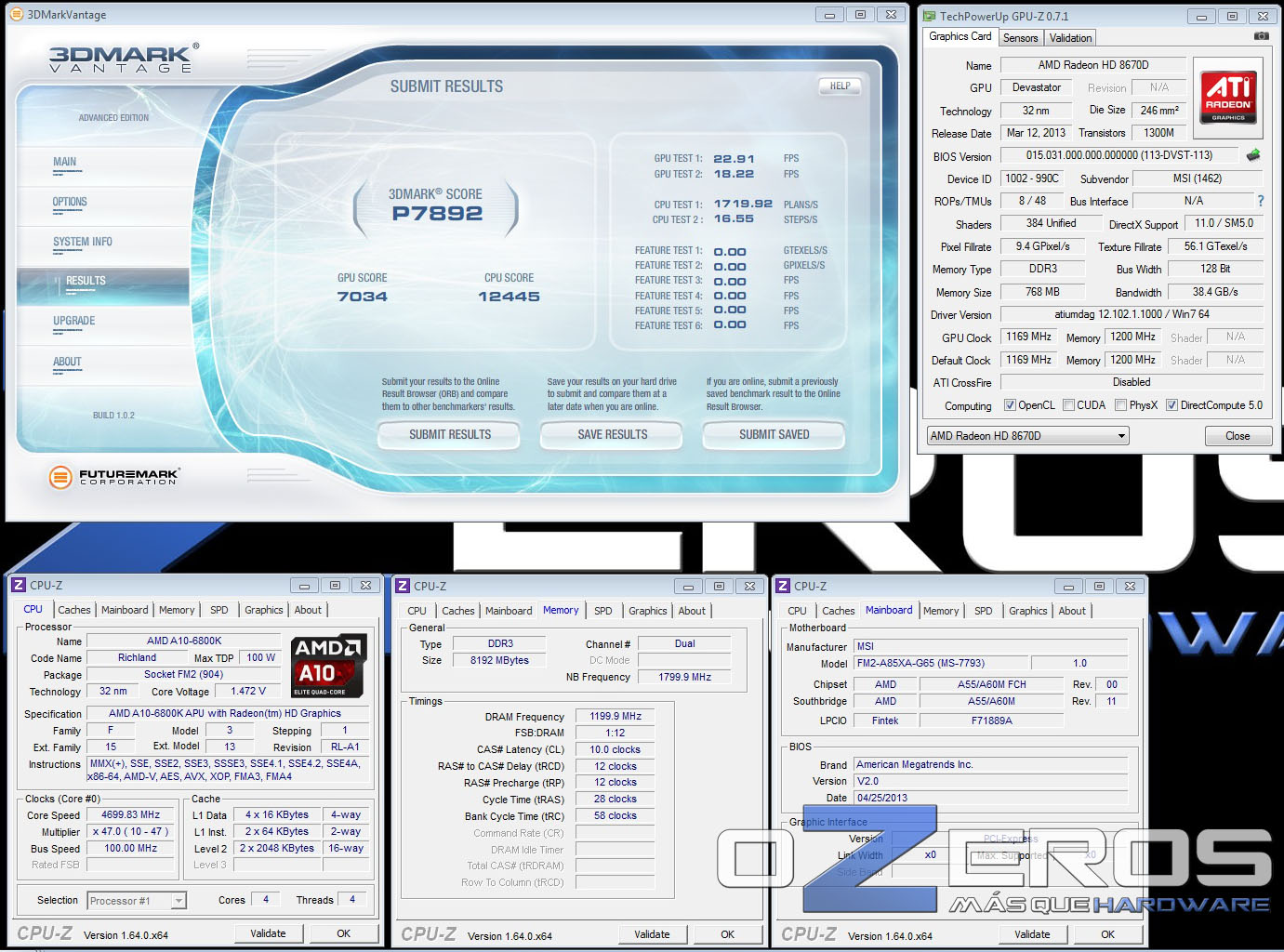 Microsoft Windows 7 Ultimate 64 bits SP1 AMD Catalyst 12.102.1.1000 (Richland) Intel Graphics v15.31.3.64.3071 |
