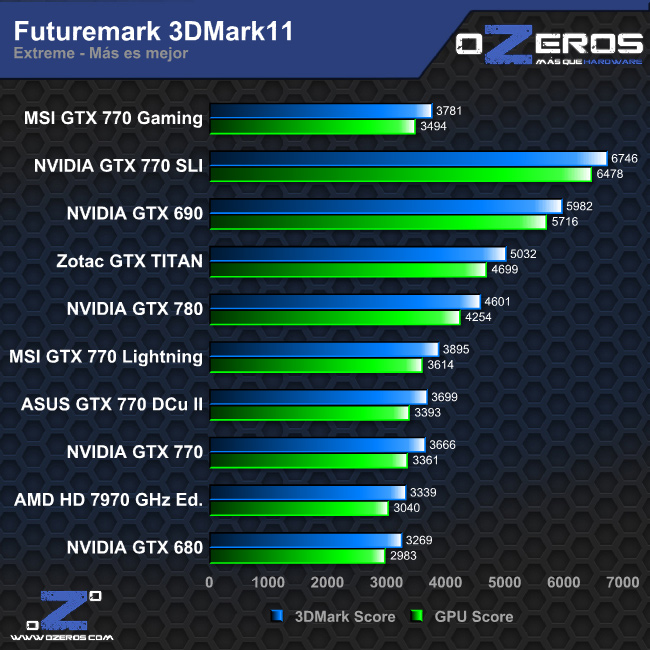 | Tarjeta gráfica | MSI GTX 770 Gaming Edition MSI GTX 770 Lightning ASUS GTX 770 DirectCU II OC NVIDIA GTX 760 NVIDIA GTX 670 NVIDIA GTX 770 NVIDIA GTX 680 AMD HD 7970 GHz Edition |
