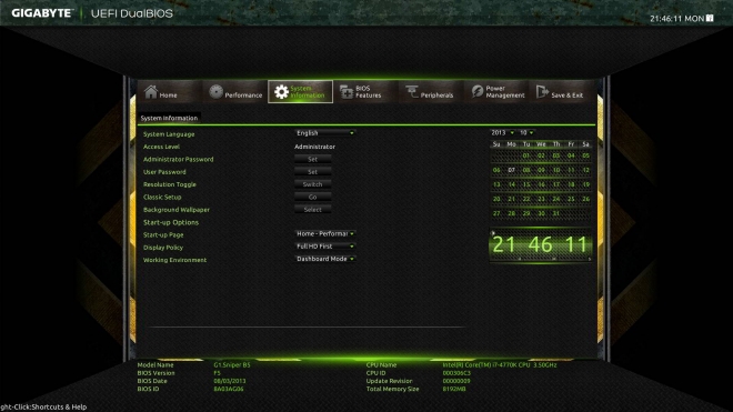 Guardando el estilo de la serie G1 Killer, la G1.Sniper B5 también consideró un diseño de máxima resolución y a todo color para su BIOS, de hecho, es bastante familiar a lo que vimos tiempo atrás en la G1.Sniper 5 original de la serie LGA 1150. Lo que nos extraña desde el primer momento es su reducido apartado de opciones, comparado con la placa madre anteriormente nombrada, claramente.