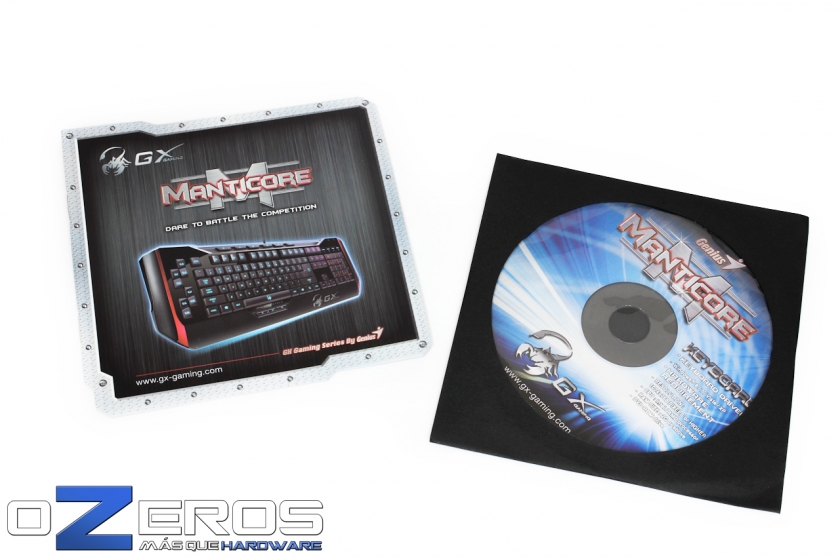 En los accesorios se adjuntan un CD con el software de instalación y un manual rápido para el uso del teclado.