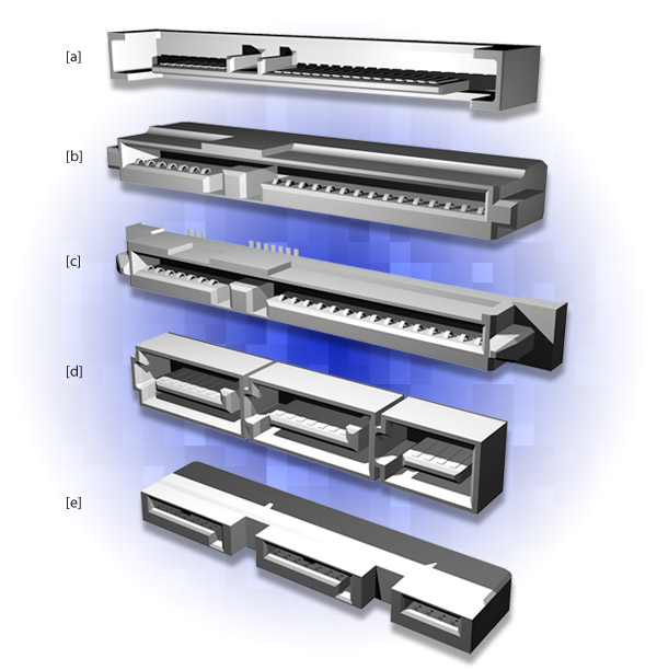 (c) Socket sería montado a un backplane o a una placa madre para recibir un enchufe (a) o un enchufe SATA estándar.