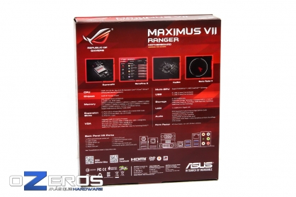 Antes de entrar en detalles partamos revisando lo que sería el primer encuentro con la Maximus VII Ranger; Una caja más bien reducida que mantiene el diseño característico de la serie. En su frontis sólo deja ver unos cuantos logotipos acerca de sus soportes, mientras que por el reverso se profundiza un poco más sobre sus características especiales y técnicas.