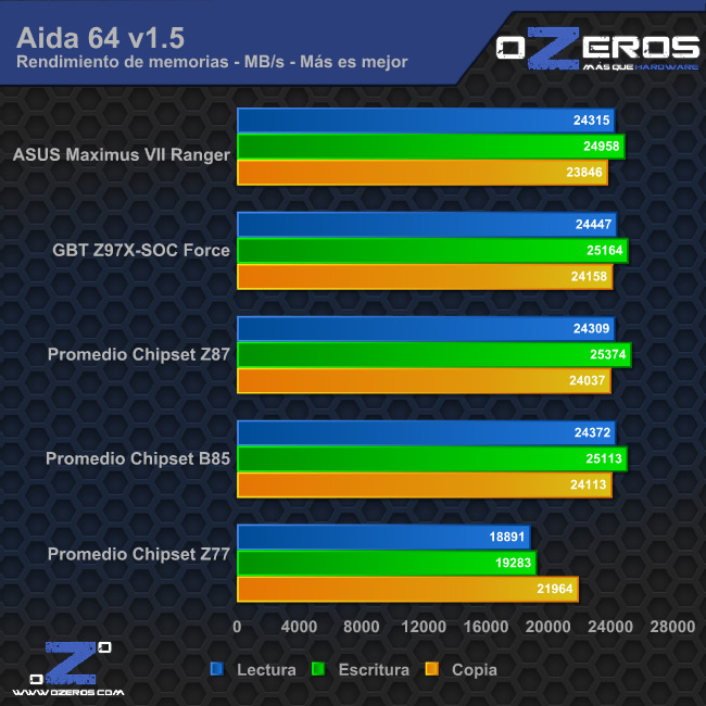 Ahora pasamos a las pruebas sintéticas, en donde buscaremos probar el rendimiento puro y duro del CPU en nuestra placa madre, por lo que utilizaremos una batería de pruebas ya clásica en oZeros.