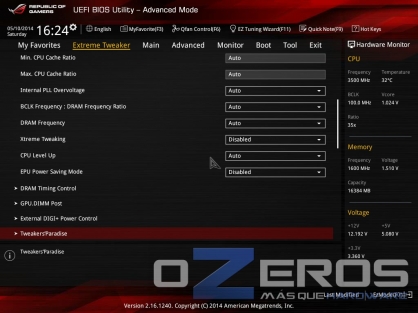 Página Principal: Extreme Tweaker, todo lo necesario para llevar al máximo el procesador y memorias.