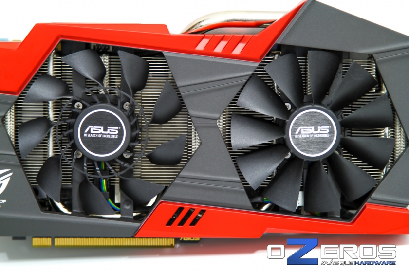 En el borde de la tarjeta, el logo Republic of Gamers se anuncia con un juego de colores iluminados por LED, el que cambia de acuerdo a la carga en el procesador gráfico. Muy útil para tener una idea del estado de la tarjeta en tiempo real.