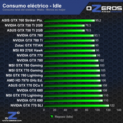 10% por sobre el modelo referencial es lo que vende ASUS con su GTX 760 Striker Platinum, y sí, lo cumple en gran parte de los títulos probados aunque nos queda la idea de que quizás el aumento sea muy poco en relación a su precio de venta, el que asciende por sobre 50 dólares más que el modelo referencial; En total, un precio a público de $299 USD por un producto excéntrico y fuera de lo que acostumbramos a ver.