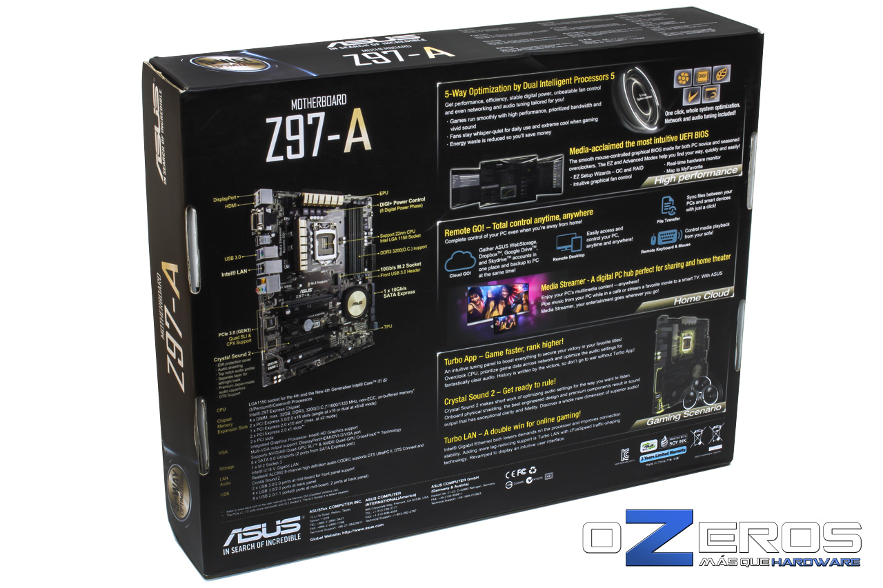 Así como lo anunciamos, hay Z97 para todos los gustos. En esta ocasión tenemos el agrado de revisar una placa madre del segmento de entrada de gama alta de la mano de ASUS. La Z97-A viene a cautivar al entusiasta que no puede acceder a placas un poco mas ostentosas pero que quiere y necesita algo de calidad. Y no nos dejemos llevar por el hecho de que sea del segmento de entrada, ya que posee el chipset tope de linea de Intel Z97, para esta plataforma y este viene con muchas sorpresas. Toma posición y comienza a disfrutar este nuevo review de la mano de Ozeros.