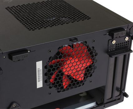 Dejando de lado el factor de forma mini-ITX, el Nigthblade Z97 entrega un gran desempeño gamer y gracias a su tamaño compacto, terminaciones de aluminio cepillado en el frente y un gran Dragón en el lado del gabinete, los gamers ya no tendrán que esconder su PC debajo del escritorio. Una útil asa ubicada en la parte inferior frontal del gabinete del Nightblade mini-ITX nos sirve para levantar y llevar esta liviana bestia gamer desde un evento a otro sin mayor problema.