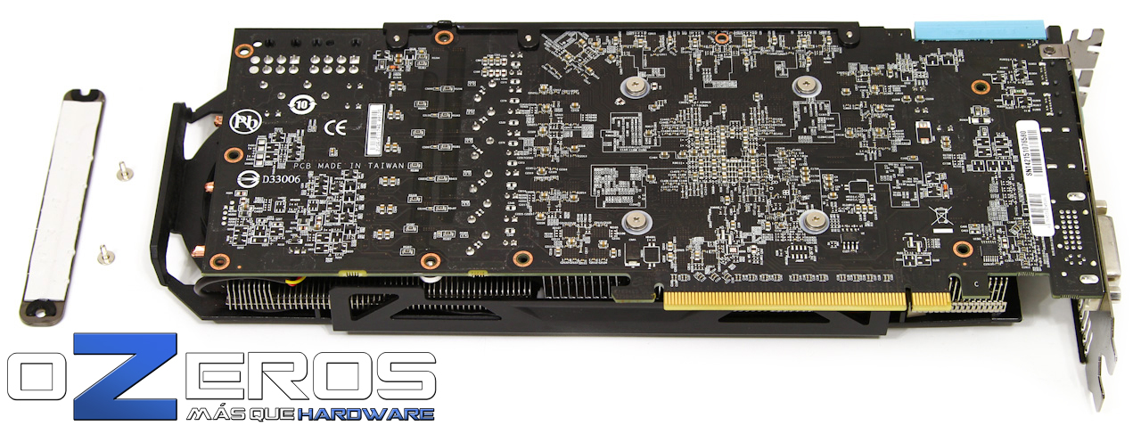 Dejando de lado el disipador WindForce 3X nos pasamos directamente a la tarjeta gráfica y su completo PCB al desnudo, tal pornografía para geeks se tratase.