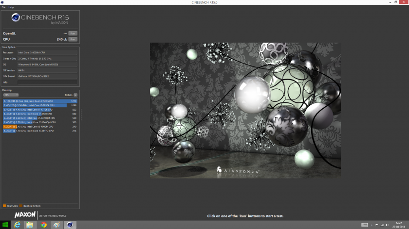 Los resultados están totalmente acordes al rendimiento de un CPU Core i3. En el test de CPU Multicore obtuvo 240 cb puntos lo que lo deja por sobre un procesador Core i5 de generación anterior. Esto nos asegura un buen rendimiento para el uso de oficina, casa o incluso para media center.