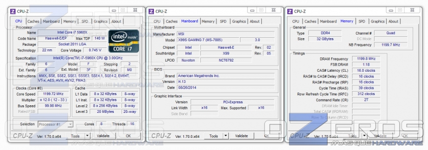 Gran fue la sorpresa, y a la vez decepción, al darnos cuenta que los procesadores se veían virtualmente iguales, de hecho su código de identificación (stepping) y velocidad eran los mismos; Estábamos frente a ni más ni menos que tres ejemplares del modelo Core i7-5960X, tope de línea de la familia. Obviamente nos hubiese gustado probar los tres modelos distintos, pero era muy posible fallar en el intento por una falta bastante grande en el tiempo. Dicen que las cosas pasan por algo.