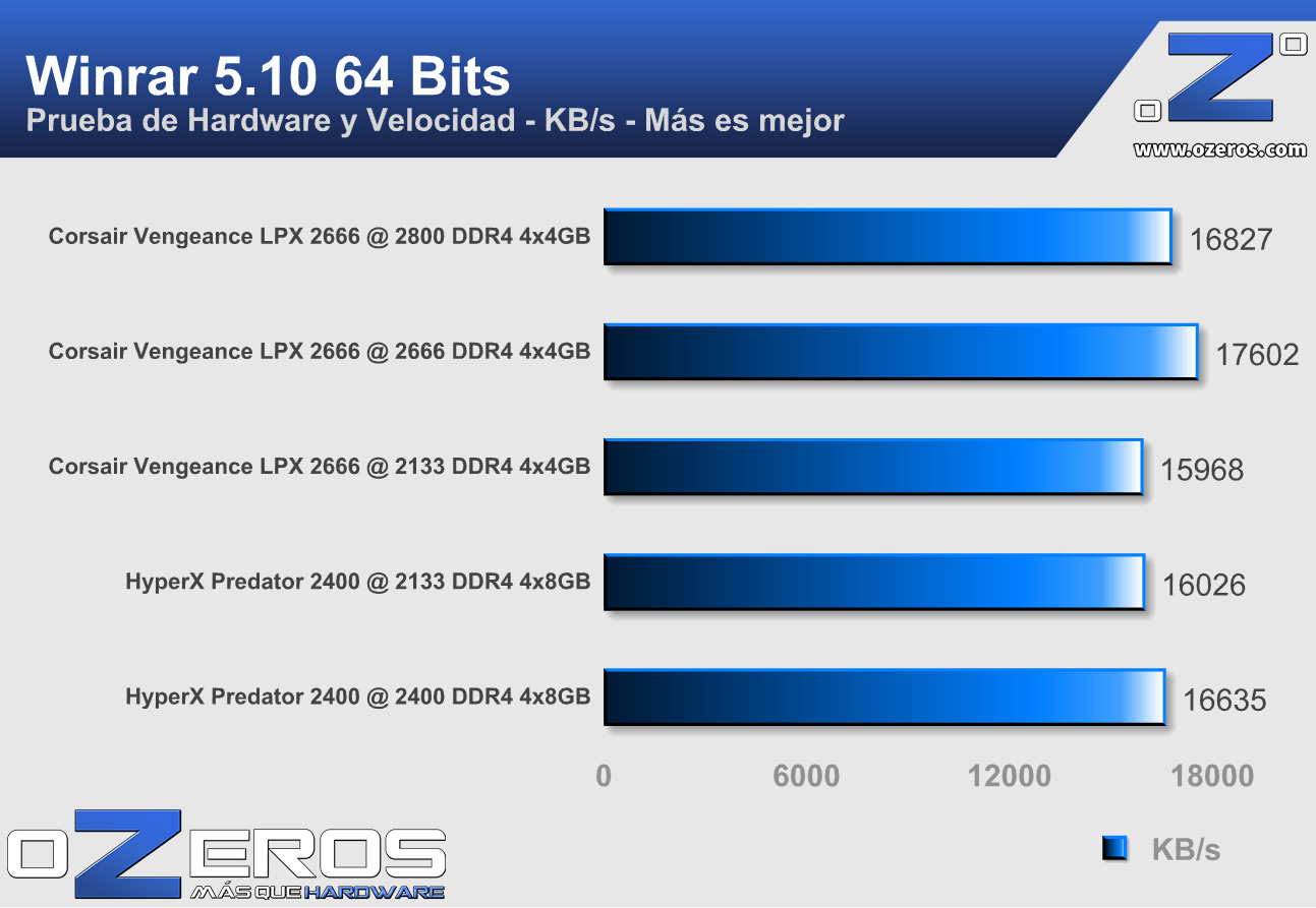 De todas maneras, la velocidad de fábrica de las Corsair Vengeance LPX es suficiente como para quedarse con el primer puesto visto, hasta ahora, en memorias DDR4 dentro de Ozeros.