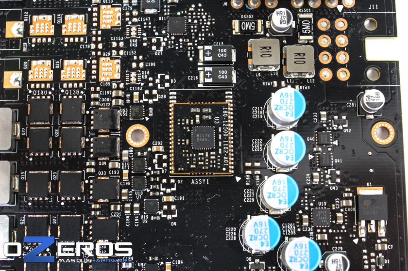 NVIDIA decidió poner el controlador de voltaje OnSemi NCP81174 en su modelo referencial el cual tiene su propio PCB que va soldado a la placa. Este controlador no tiene soporte para I2C, así que no veremos un monitoreo avanzado aun que de igual forma los voltajes VID pueden ser monitoreados y controlados por el driver de NVIDIA.