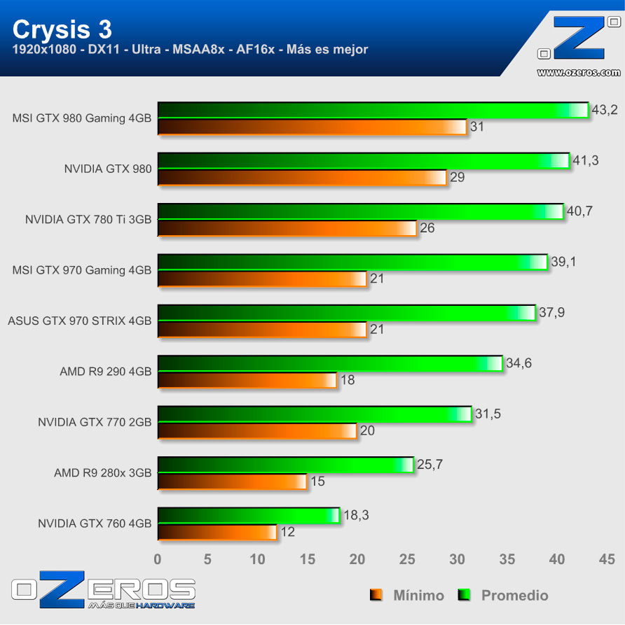 | Juegos reales y Benchmark tools | Batman: Arkham Origins Battlefield 4 Crysis 3 GRID: Autosport Hitman: Absolution Metro: Last Light Tomb Raider |