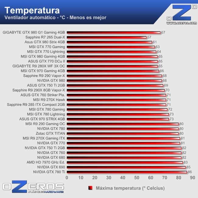 | ASUS GTX 980 Strix 4GB | 317 Watts | 1,821 | Vigente |
