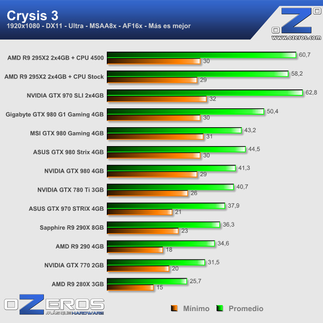 | Juegos reales y Benchmark tools | Batman: Arkham Origins Battlefield 4 Crysis 3 GRID: Autosport Hitman: Absolution Metro: Last Light Tomb Raider |