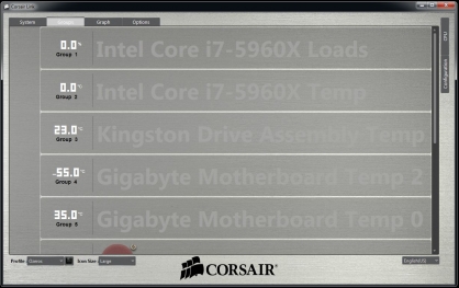 Vale mencionar el detalle en la lectura de temperatura para el procesador Core i7-5960X, el que a ratos mostraba unos imposibles 0 grados Celcius a temperatura ambiente.