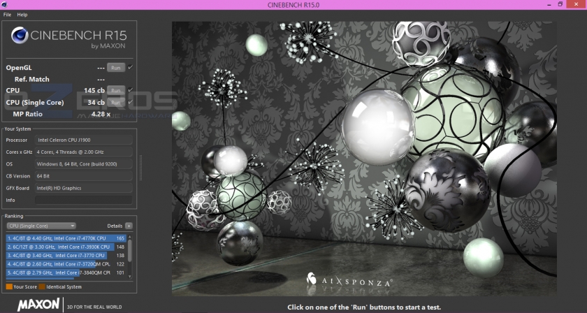 Y finalmente, una mirada al rendimiento con Cinebench nos muestra que esta dentro de las maquinas de bajo rendimiento destinadas a escritorio mas que a ser maquinas de potencia absoluta.