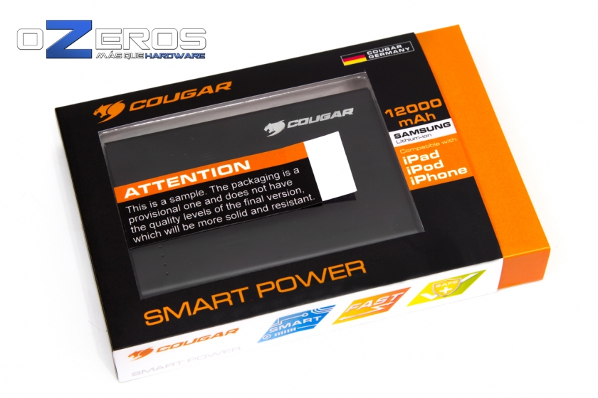 Siendo un producto que aún no ha sido lanzado oficialmente, el Smart Power de Cougar viene en un pequeño envase pensado en el mercado retail con la principal consigna de que éste no se trata del envase o packaging final ya que nos llegó un sample de pruebas. De todas maneras es posible que no hayan grandes cambios en el apartado visual o artes de la caja, más que nada en la dureza del mismo ya que se nota bastante flexible.