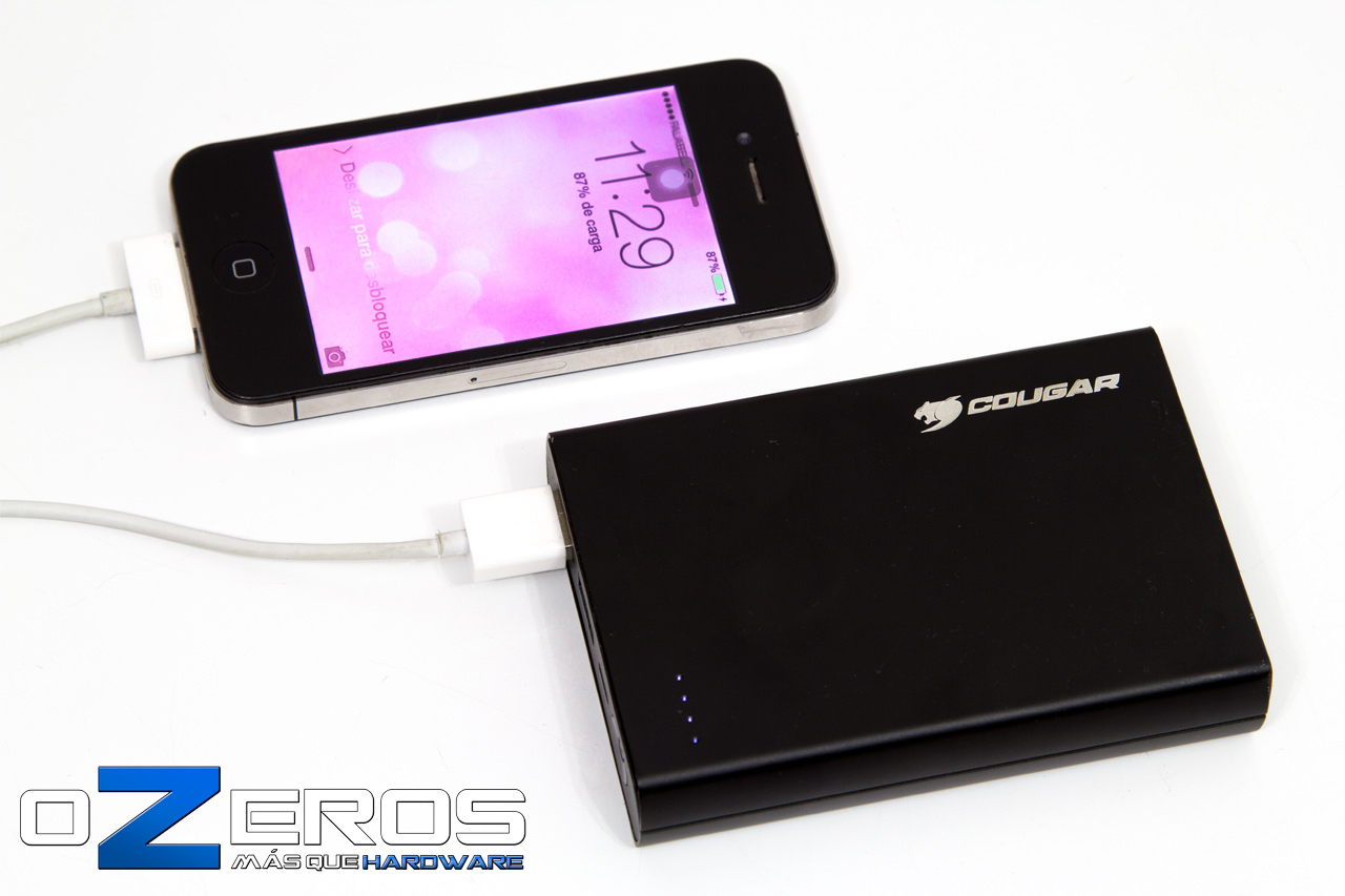 Esta es sin duda la prueba de mayor exigencia para la batería Cougar ya que de forma simultánea cargaremos nuestro iPad Mini y el iPhone 4S. Al igual que en las pruebas anteriores, dejamos la batería totalmente vacía y procedimos a cargarla completamente.