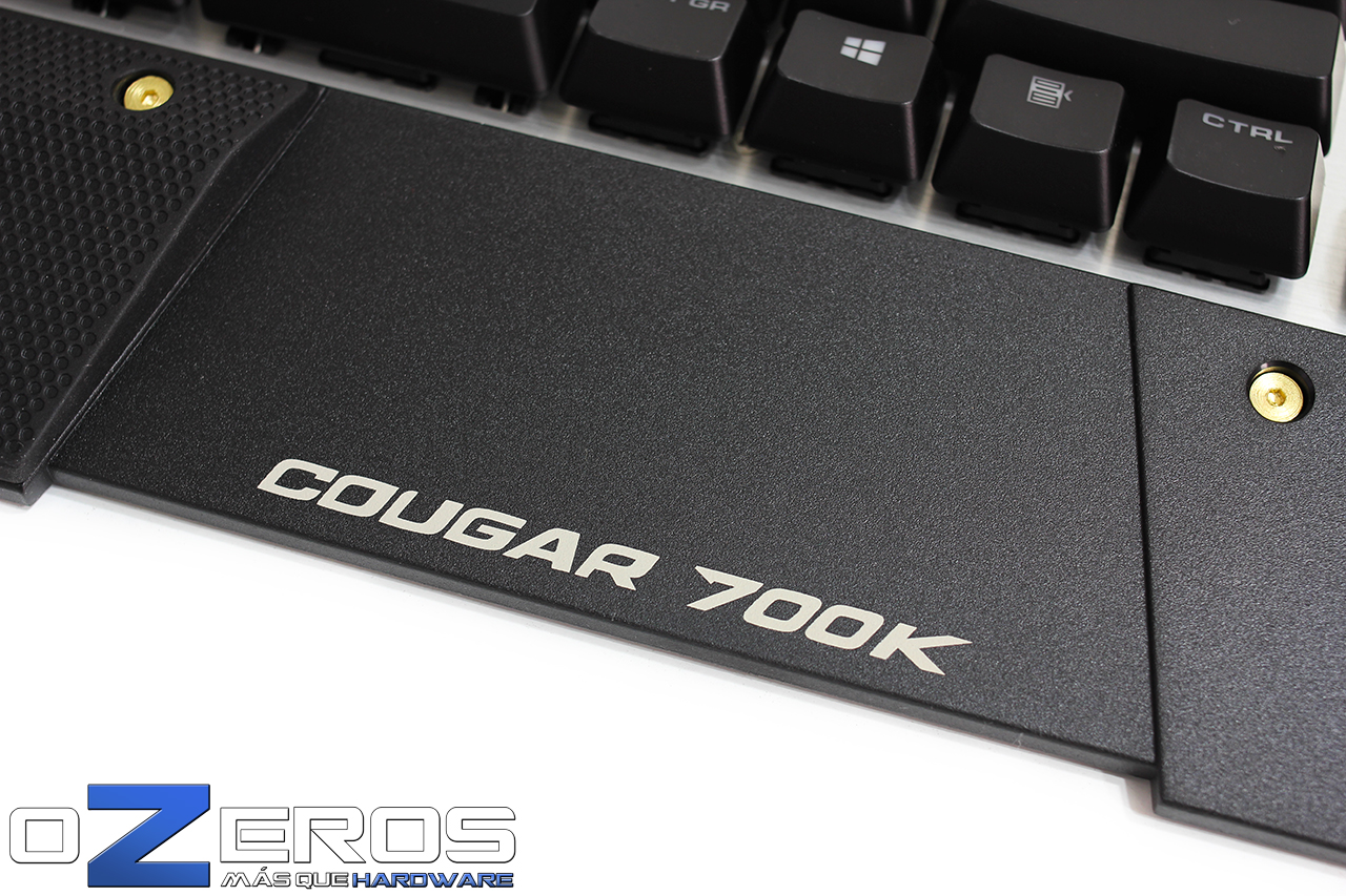 Su base está hecha de plástico con relieve, todo de calidad bastante buena y con el nombre del modelo inscrito en ella: Cougar 700K.