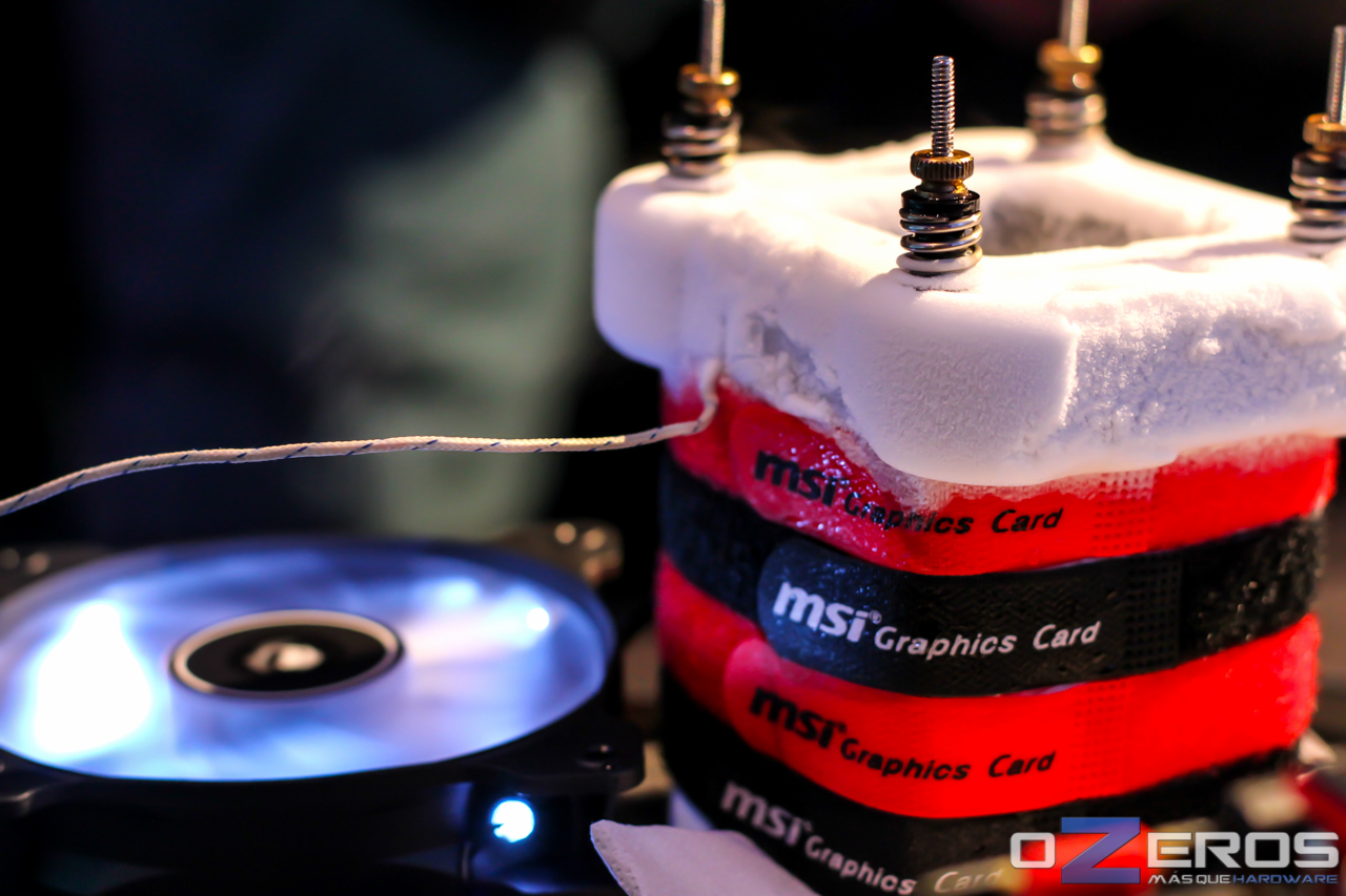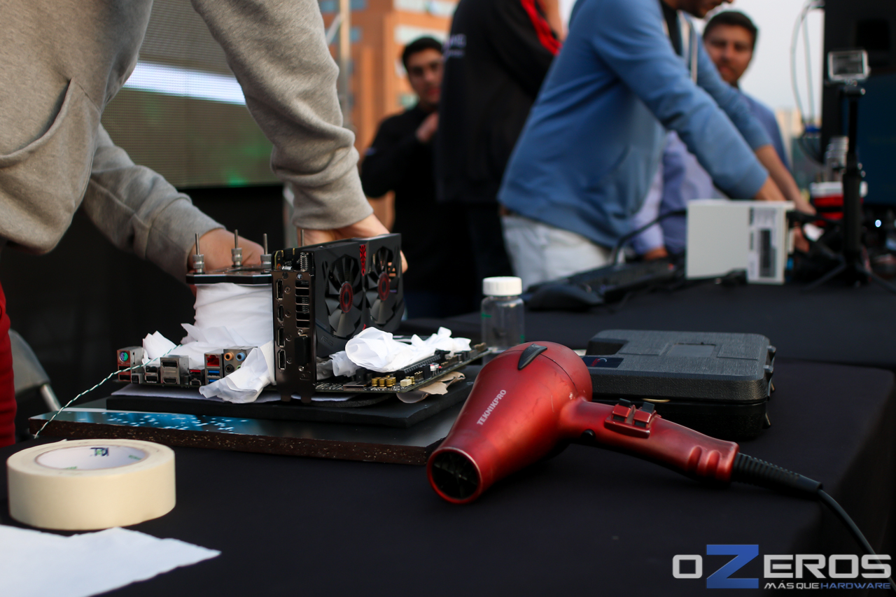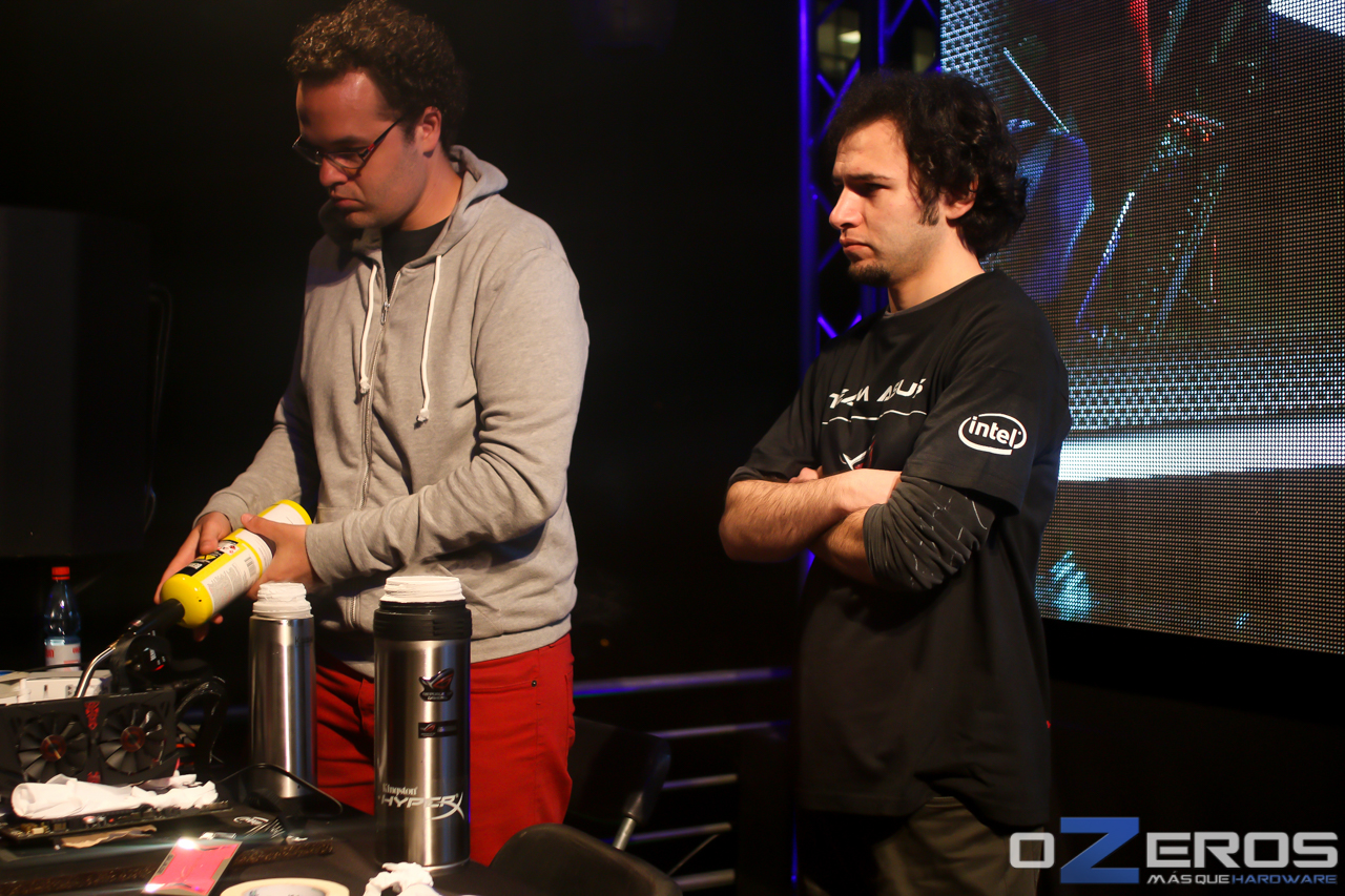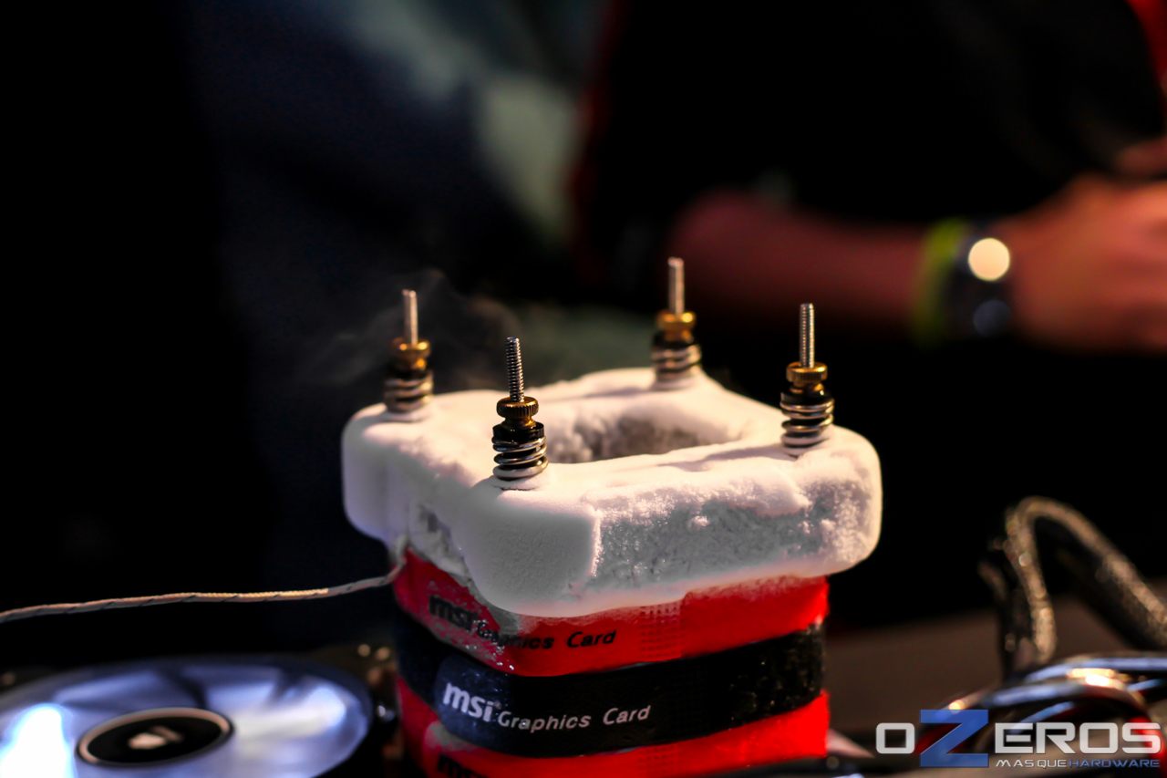 Con 100 Litros de nitrógeno líquido y dos Intel Core i7-6700K listos para arder, ASUS dispuso su Maximus VIII Hero a cargo de overclocker record mundial Nacho Arroyo, que actualmente ostenta varios registros importantes con esta plataforma, mientras que MSI mostró su opción Z170 Gaming M7 comandada por un miembro de la casa, Pipejarcore, quien logró alcanzar los 6.001 MHz con esta reciente plataforma.