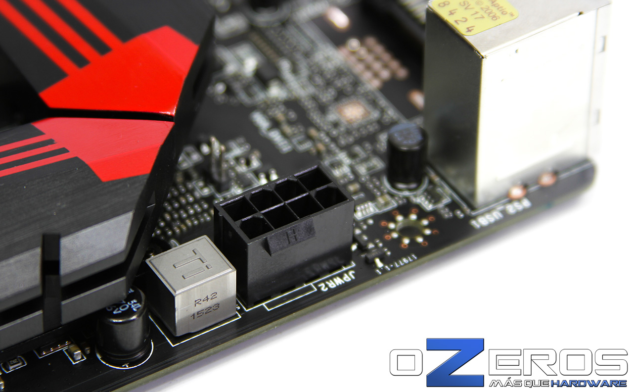 En el otro costado encontramos el conector EPS de 8 pines encargado de entregarle la energía necesaria a nuestro CPU.