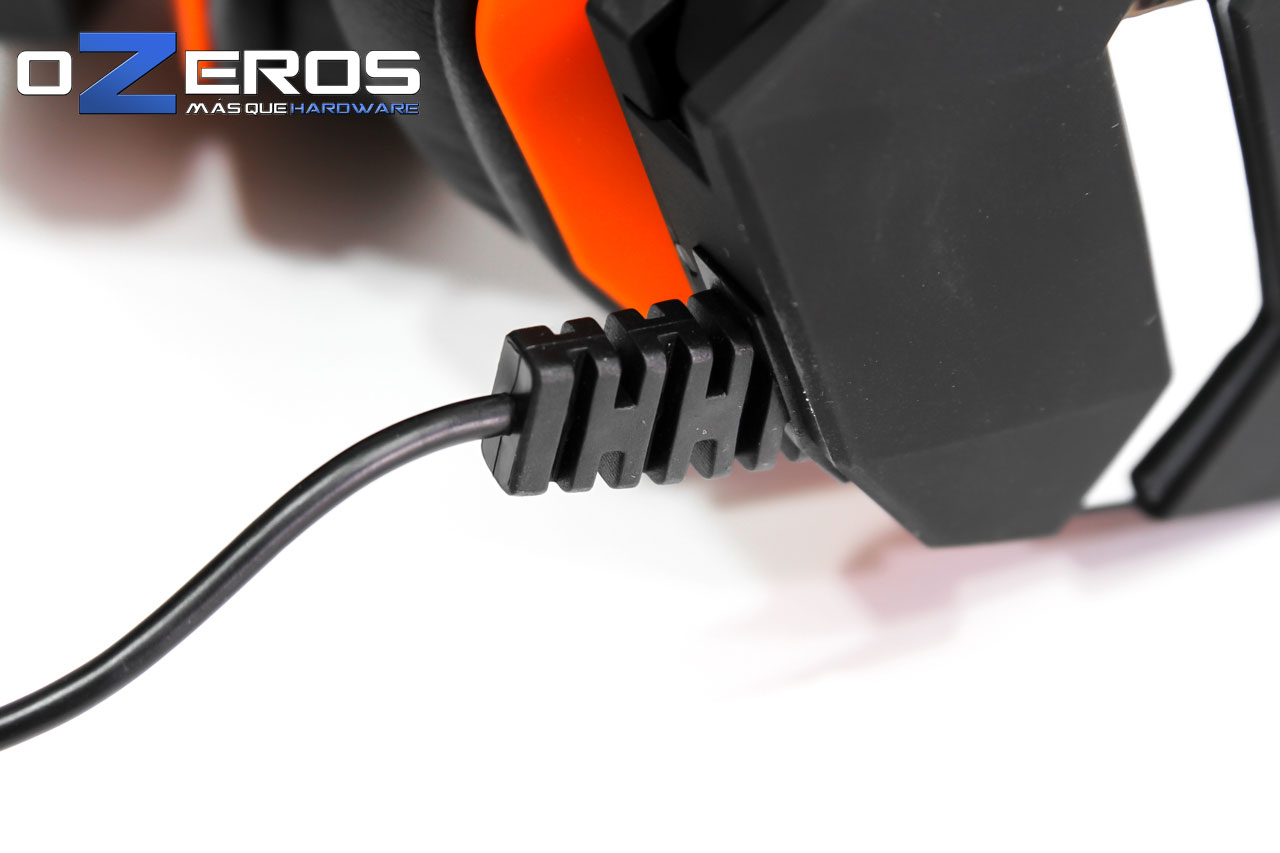 Vemos que poseen un gran look, basados en plástico y recubiertos con eco-cuero, el cintillo es naranjo en interior y negro en el exterior donde ademas nos encontramos con el logo de Ozone, las almohadillas de los speakers también estas fabricadas de eco-cuero rellenas con un materias suave, el cual nos proporciona máxima comodidad, en el fondo vemos la cubierta de los componente internos de los speakers en un tono naranjo. El micrófono es flexible y no es removible, vemos además el control de volumen que ademas posee un botón de cancelación de sonido, finalmente vemos el puerto USB.