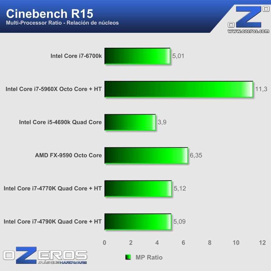 Vamos que a punta de rendimiento bruto podemos hacerle algo de competencia a los 8 nucleos y 16 hilos del 5960x, en cuanto a los demas CPU’s, son superados sin problemas por el 6700k.